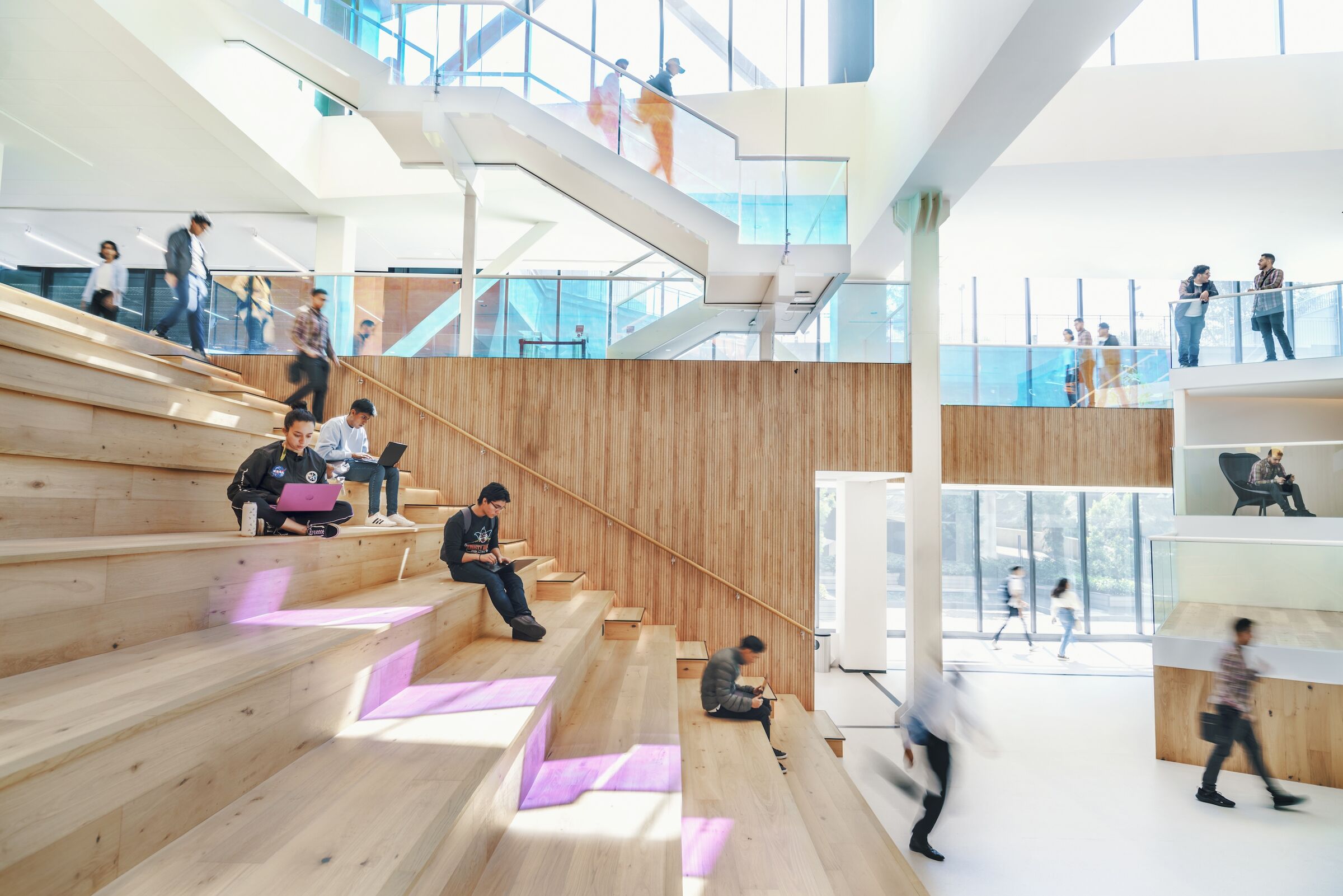 Start-up studios and co-working areas offer resources for budding entrepreneurs, while public zones become informal exhibition spaces—celebrating student work and inviting community engagement.