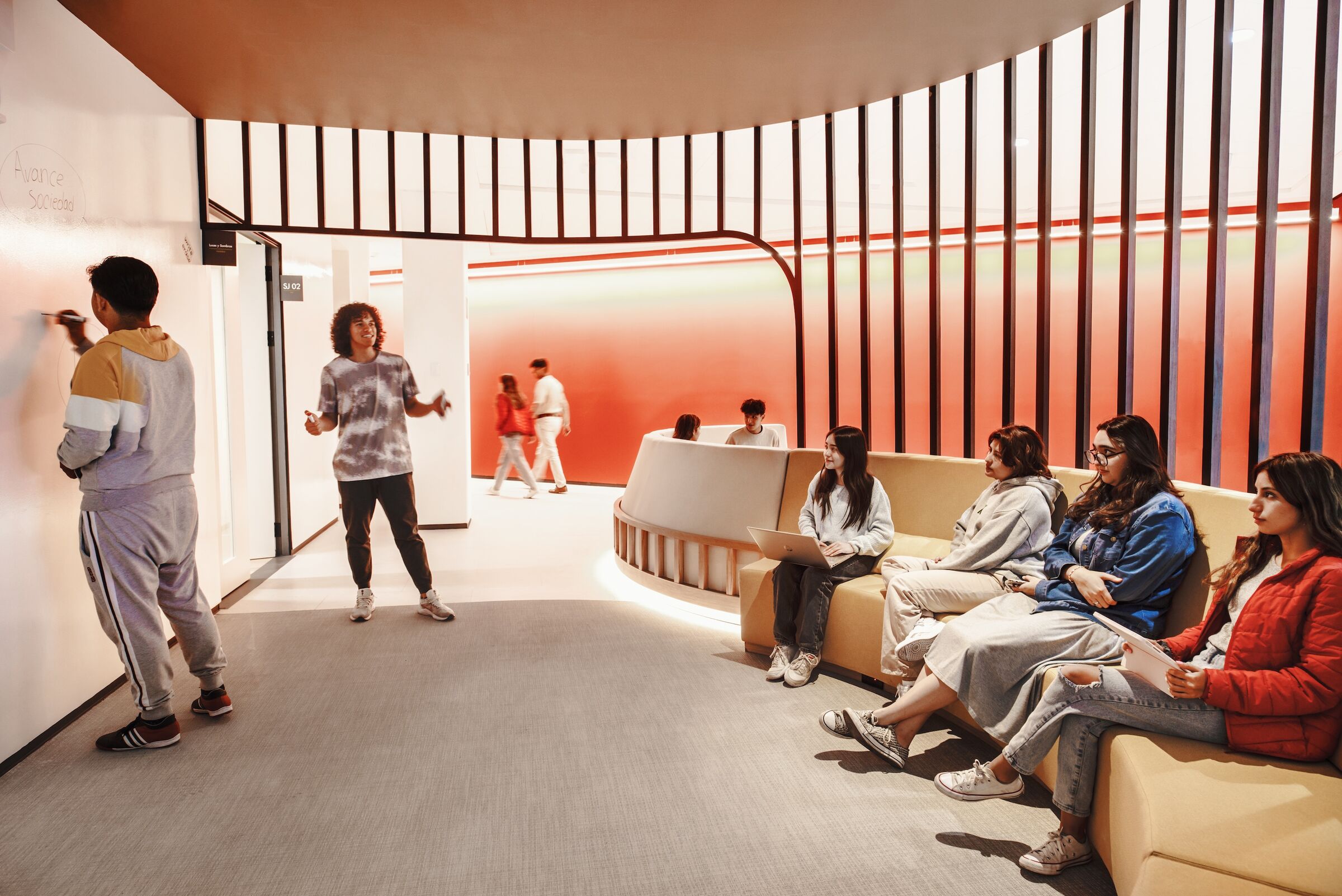 Spanning over 16,000 square meters, Universidad de la Libertad occupies the lower two floors of the building (6,000 sqm), while the upper levels (10,000 sqm) house the middle and high school divisions of Humanitree School. This bold vertical integration allows younger students to witness higher education in action, inspiring aspirations and fostering early exposure to multidisciplinary learning environments.