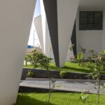 A defining conceptual strategy was the dynamic geometric motif derived from the industrial context: triangular roof forms reminiscent of surrounding production halls. This geometry was abstracted and aligned with the English letter “A” in the AnAhitA brand, creating a consistent visual and spatial language. The “A” motif appears across multiple layers of the project—from the entrance and landscaping to the facade and interior detailing—establishing a dialogue between brand, architecture, and user experience.