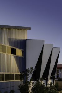 The building’s material palette and detailing reflect a sensitive integration with its industrial context while emphasizing sustainability, durability, and visual clarity. Openings, glazing, and shading elements are carefully proportioned to mediate light and heat, while the use of native colors and textures provides a tactile connection to the local environment.