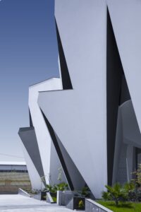 The “A” motif manifests in multiple scales and forms: in the landscape layout, facade articulation, skylines, and interior elements. Each repetition reinforces the brand’s presence while creating a subtle sense of orientation and continuity throughout the building. Interior spatial elements, from partition walls to circulation paths, respond to both functional needs and the narrative of the brand, resulting in workspaces that are simultaneously operationally efficient and architecturally meaningful.
