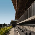 The architectural language of Yuki draws deeply from local wisdom, particularly the reinterpretation of the Wantilan, a traditional Balinese communal pavilion. This inspiration manifests in the building’s bold yet graceful roof, whose iconic silhouette floats above the cliffside. Supported by a rhythmic bamboo structure, the roof expresses both strength and fluidity, functioning as a cultural gesture, a shelter, and a connective threshold between indoor and outdoor spaces. By blurring boundaries between sky and earth, the design captures the essence of Uluwatu’s dramatic coastal landscape while creating a symbolic link to communal gathering traditions.