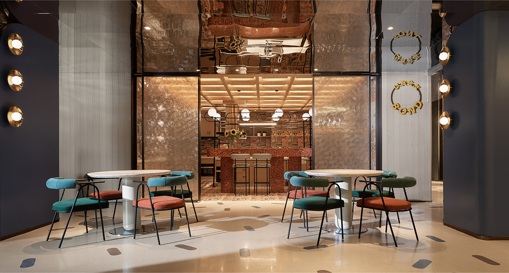 Unlike conventional hotel service counters, 31Design draws inspiration from the contours of Tang Dynasty architectural ridges, presenting a novel idea for space-time transformation to create a social space combining hotel reception services, cafés, and bars. Dialect neon lights embody the most authentic and warm hospitality.