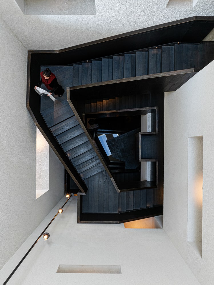 Within, the architecture fosters a sense of vertical spatial fluidity. Natural light and sightlines are manipulated to produce a “vertical flowing garden,” where spatial narratives unfold continuously as guests move through the hotel. Interior volumes are carefully rotated and articulated, blurring the distinction between inside and outside. The resulting spaces allow guests to experience the landscape from multiple perspectives, revealing new angles, light qualities, and seasonal changes with every visit.