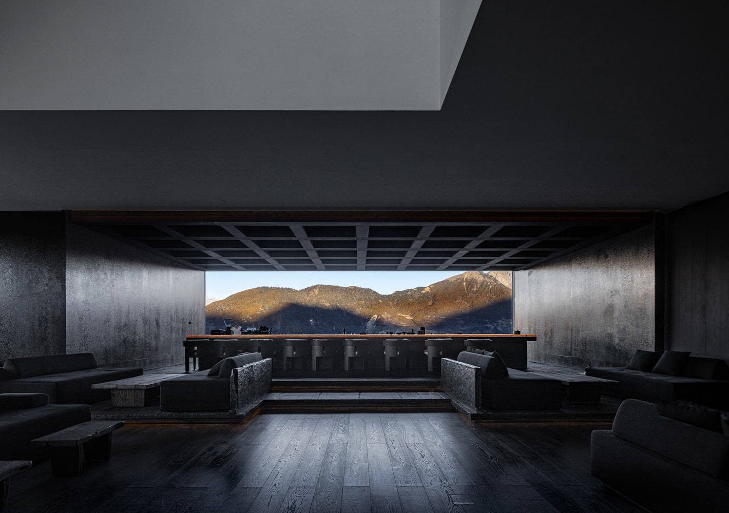 The building frames nature as a living canvas, acting as a vessel for the alpine panorama. Architectural elements guide the eye toward the peaks while offering intimate vantage points within the hotel. Seasonal changes in snow, sunlight, and shadow are reflected in the experience of the interior spaces, creating an architecture that is ephemeral yet enduring, dynamic yet grounded in permanence.