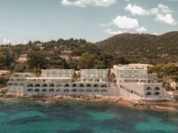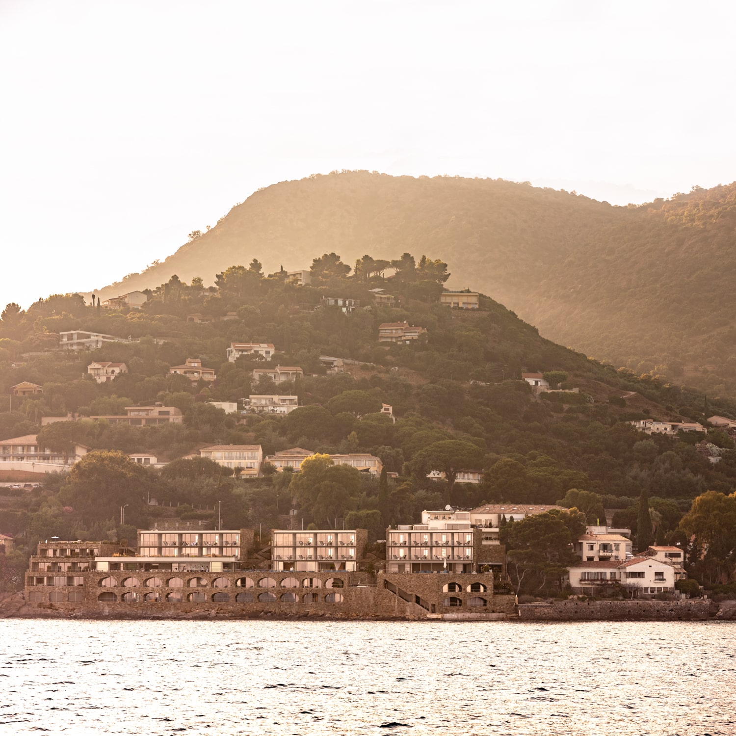 Over the decades, the hotel was expanded several times: modestly in the 1950s, then more substantially in the 1980s. These successive additions formed a layered patchwork of styles and materials, including white plaster walls, blue shutters, fragmented volumes, and the region’s iconic Bormes stone. Despite its charm, time left its mark—the structure became fragmented and outdated, losing its coherence while retaining its aura and exceptional location.