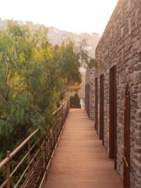 Circulation between volumes is ensured through metal footbridges, stone stairs, and landscape-integrated pathways, connecting guests to the natural contours of the site. Every joint and junction was crafted with precision, turning construction into a form of architectural poetry—a project where material and technique serve both beauty and meaning.