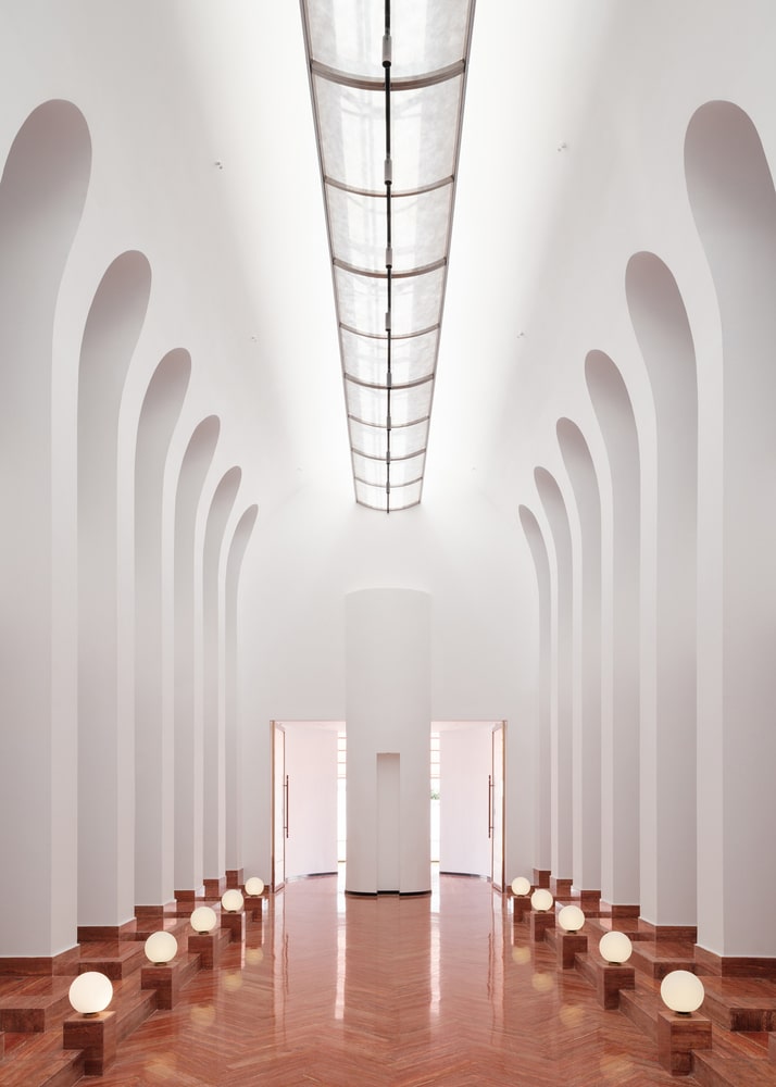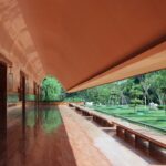 A remarkable engineering feat underpins the design: nearly 100-meter-long column-free corridors are achieved through innovative steel cantilevers. This structural solution eliminates visual obstructions and enhances the horizontal emphasis of the architecture, creating an impression of floating volumes above reflective water surfaces. The cantilevers also amplify the poetic quality of the space, allowing visitors to experience a sense of weightlessness and serenity while traversing the complex. Through these interventions, the architecture manages to be both technically rigorous and aesthetically compelling, merging functionality with a refined expressive language.