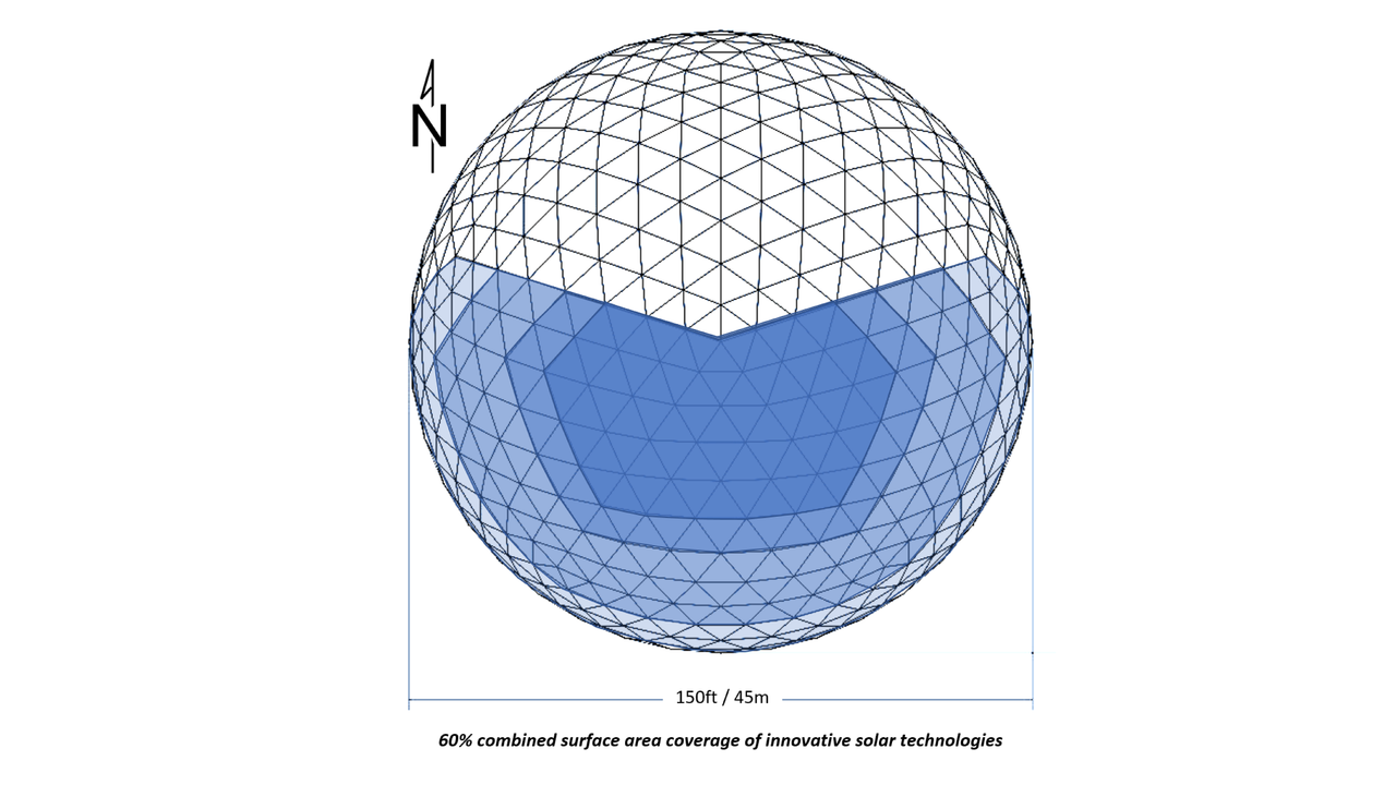 150′ across and 75′ tall with a completely column-free interior for a natural outdoor feel.