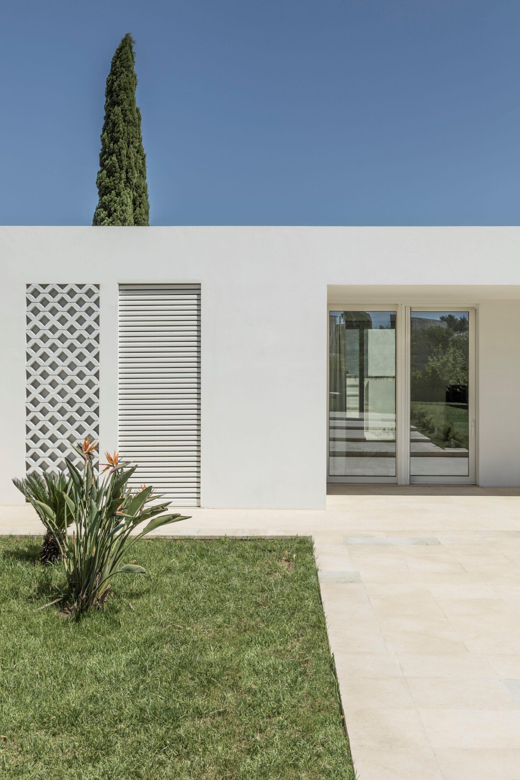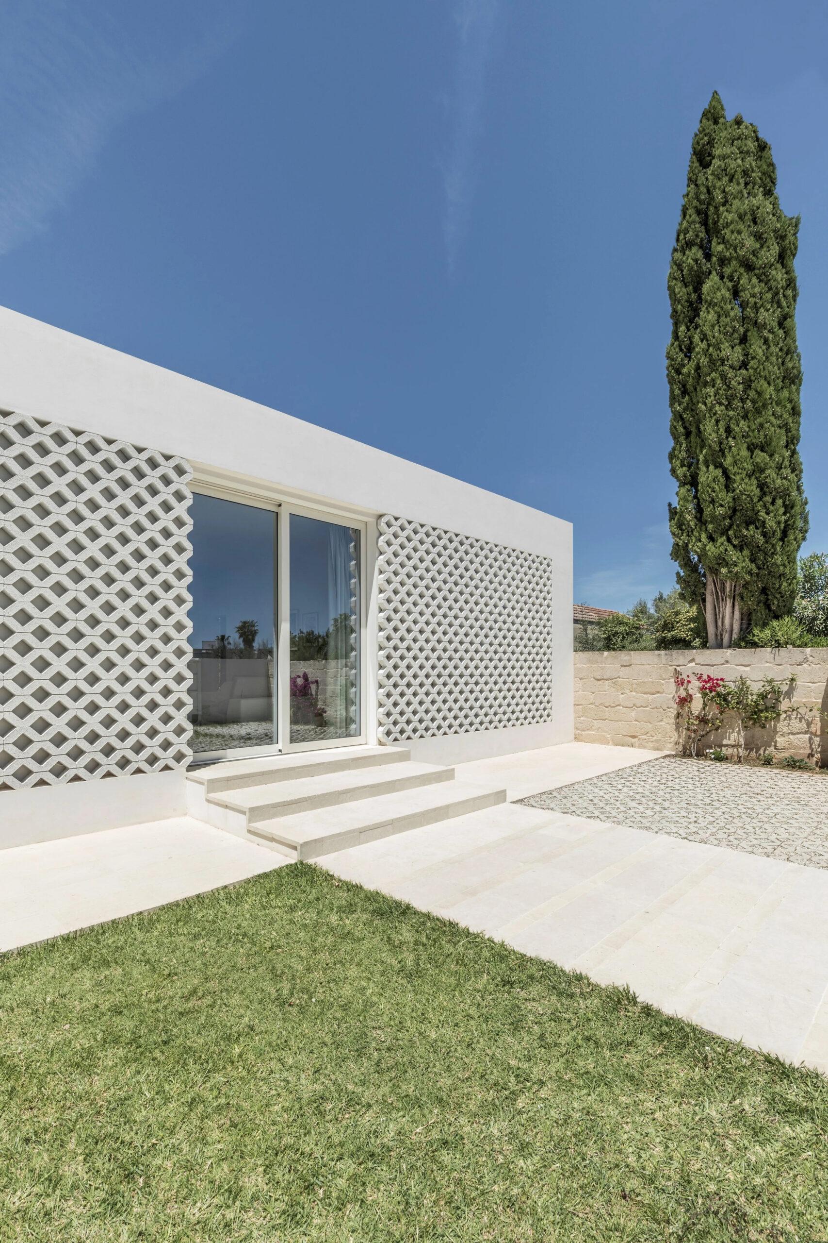 The villa, spread across a single ground level, encapsulates a blend of symmetry, organic flow, and essentialism. This approach confers upon the house a unique plastic and monolithic character, a stark departure from traditional designs yet seamlessly integrated into the rural backdrop. A key architectural feature is the use of rhomboidal lattices, crafted from concrete blocks, which not only enhance the facade but also play a pivotal role in creating a captivating dance of light and shadow throughout the day, dynamically altering the perception of space.