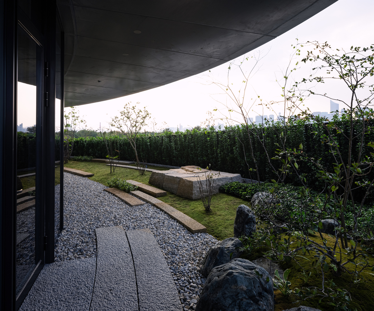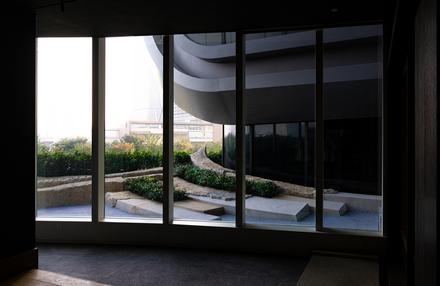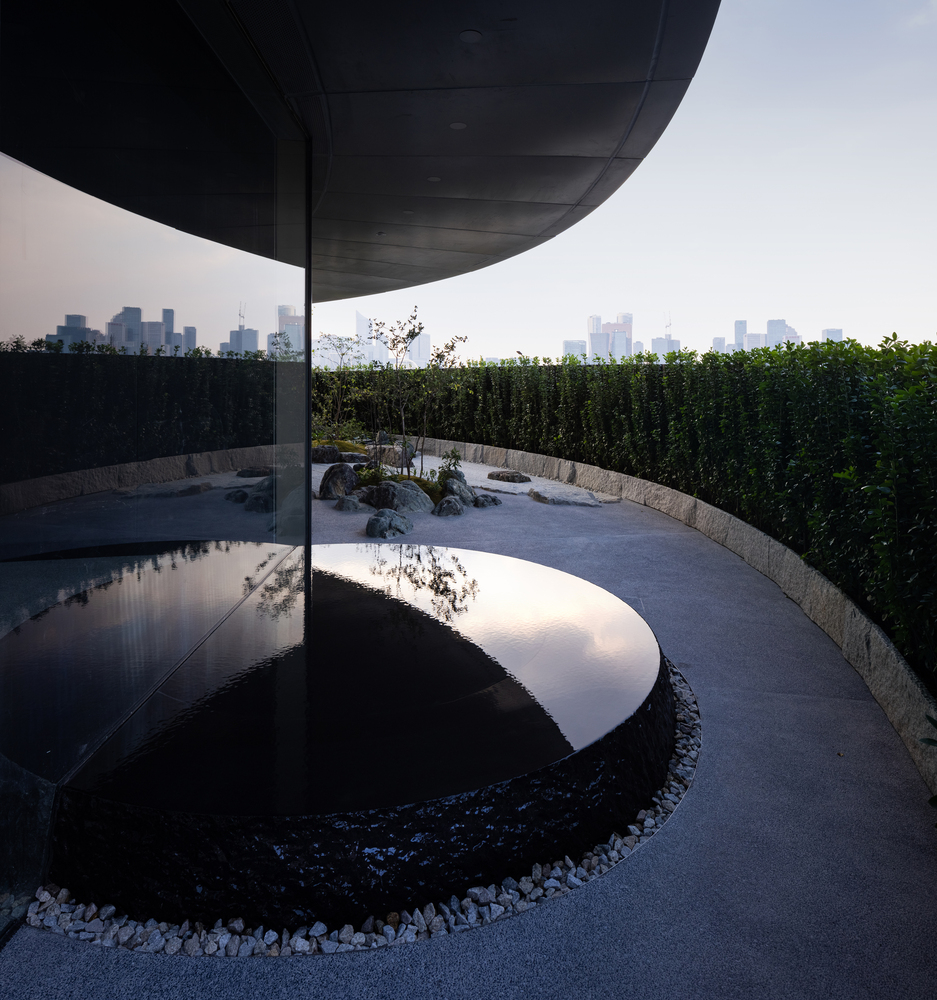 The concept extends into the private rooms and communal spaces, where the curvature of the building and strategic positioning of windows create a unique interplay between the interior and the exterior world. The design of these spaces is thoughtful and purposeful, with each offering a distinct perspective of the surrounding cityscape and natural elements. The use of raised tatami mats and sofas in front of the windows in some areas, and the open-air approach in others, exemplifies the complex’s commitment to offering diverse experiences.