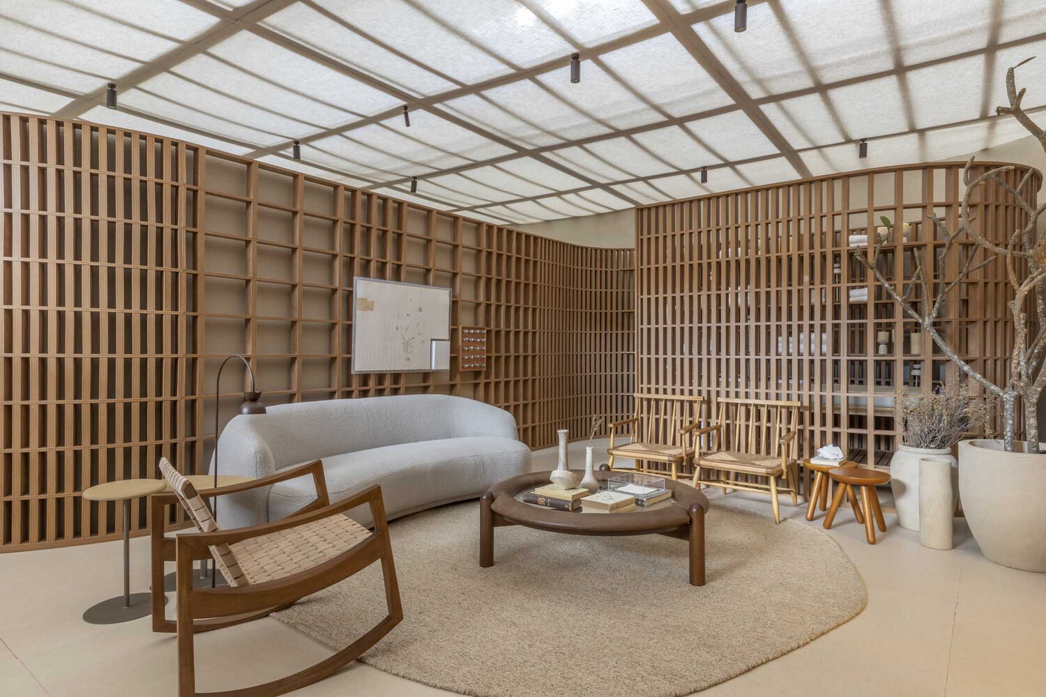 The folding screen, a central feature of SPA NAZ, serves as both a functional and aesthetic element. It frames the living and relaxation areas while providing privacy in the massage space. Behind this screen lies a discreetly integrated garden, introducing a touch of greenery that enriches the spa’s calming ambiance.