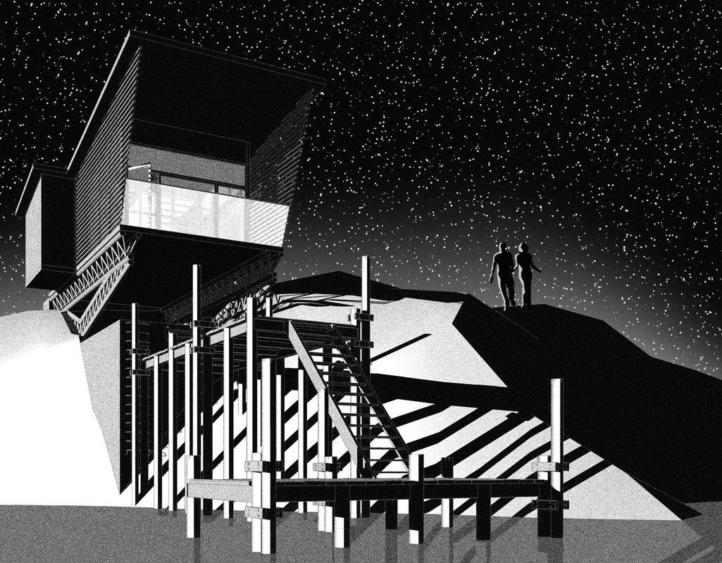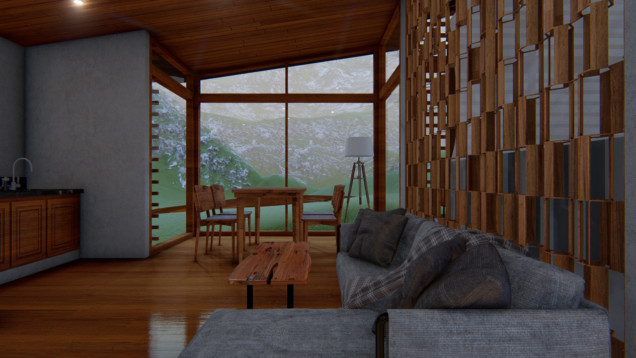 To build on the lake surrounded by mountains is always a challenge, because whatever one builds and however beautiful it may be it still takes away that much from nature. The strategy then is to build a glass house perched on the land and providing privacy for the inhabitants, at the same time to make sure the lake view gets highlighted from inside for the inhabitants. The structure is wood steel and glass, supported on 2 RCC columns, perched like a bird on land.