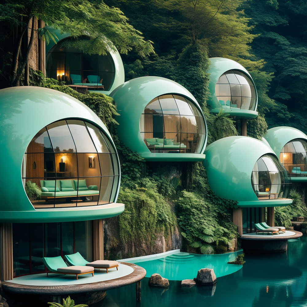 Nestled within the lush embrace of a tropical jungle lies an extraordinary architectural marvel — Jungle cabins comprising minimal sphere detached resorts. This unique project redefines luxury and sustainability by marrying the elegance of Tiffany-inspired facades, the time-honored design of Eskimo houses, and the breathtaking beauty of the jungle’s verdant landscape.
