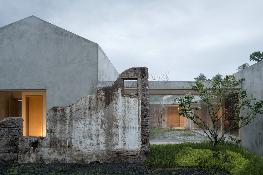 The Villagers’ Home in Wanghu Village translates traditional folk houses through spatial and construction patterns, infusing historical memory into the architecture to sustain the original prototype. The overall form of the sloping roof block is placed within the existing old walls, allowing the Villagers’ Home to naturally “grow” out of the old walls. The new building and the old walls complement each other, creating a harmonious interplay of visibility and invisibility. Furthermore, on the site of the third mushroom breeding house, the previously existing third house has been recreated, reviving the labor scenes of the past on this piece of land and evoking collective work memories among the villagers.