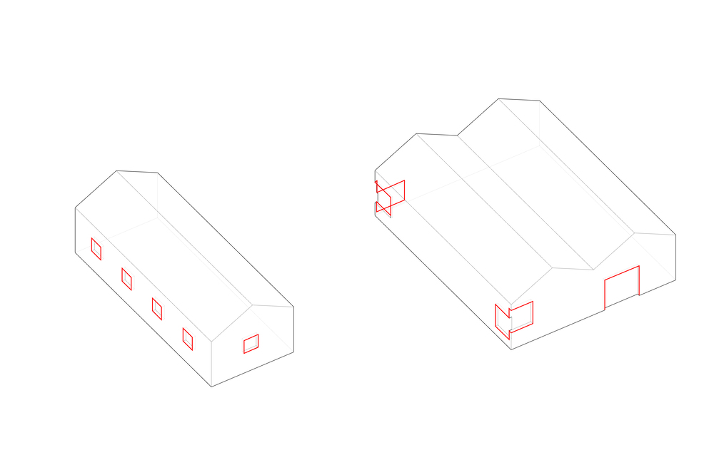 The current windows on the walls are small and evenly distributed due to the limitations of the mechanical properties of rammed earth. Thus, it is difficult to construct larger window openings. Additionally, the original mushroom breeding houses had a sensitive requirement for light. As a result, the overall facade appears relatively closed-off. However, with increasing demands for comfort, these smaller windows are no longer able to meet the requirements for lighting and ventilation.