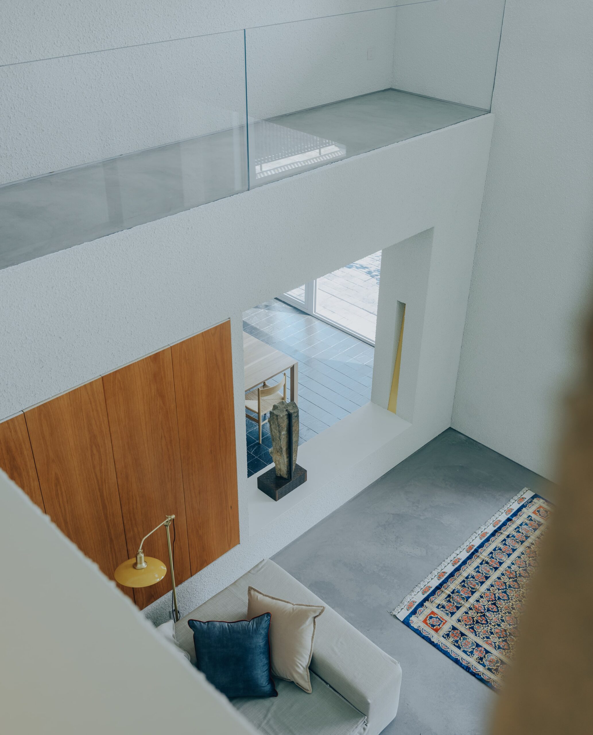 The protruding balcony and sunroom were removed. The original structure was resized—some parts expanded, others reduced—and the floor heights were reset to create a cohesive sense of scale. Sunlight pours in through skylights into the double-height entrance hall, flows through a transitional space, and reaches a living room enclosed by inward-facing plants. Due to structural adjustments, the living room now occupies a cantilevered box at the very heart of the house, looking out toward the slightly offset dining area and sunken garden. By raising the concrete structural beams, a column-free indoor garden space was created beneath the floating living room. The resulting void allows sunlight to flow naturally through. As various plants thrive, the floating box of the living room will eventually be embraced by tree canopies, echoing the courtyard’s greenery both inside and outside. The double-height central atrium on the second floor becomes a passage leading to three bedrooms. A corridor wraps around the floating living room. Due to the spatial shifts, the path to each bedroom differs. As one walks through the space, views cut through both interior and exterior, revealing a garden within a garden, wrapped in greenery over two levels.