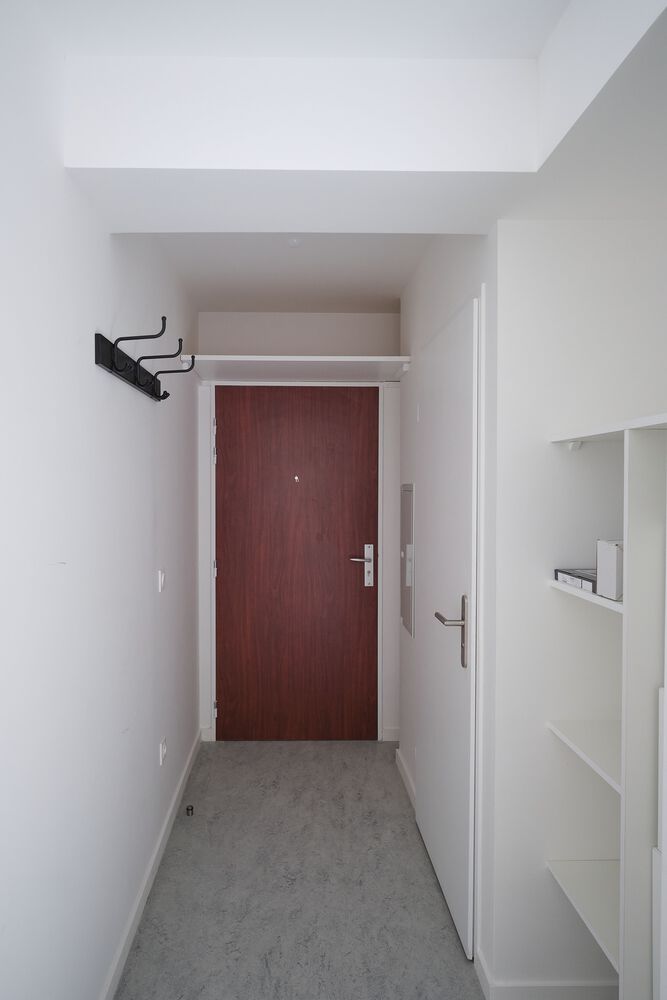 The interior layout of Emmaüs Clignancourt prioritizes functionality, sociability, and ease of maintenance to serve the daily life of the Emmaüs community. The building’s flexible plan accommodates a variety of activities while remaining practical for residents and temporary guests. The selling floor benefits from a broad street-facing window and double exposure, maximizing daylight and providing an expansive, open space for community activities. Upper-floor apartments are organized around a central corridor that receives natural light, with nine flats of equal area arranged for efficiency and accessibility. One apartment is designed to be larger and fully accessible for residents with reduced mobility. Bathrooms are centrally located to optimize circulation and allow living spaces to face the façade, enhancing daylight penetration and visual connection to the street.