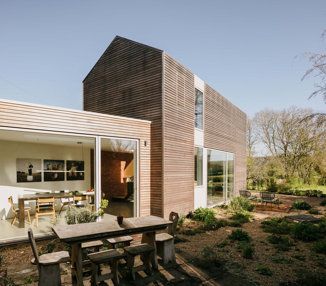 Set within a Thameside village on the edge of the rolling countryside of West Berkshire, Bridleway House is a carefully considered residential extension that balances innovation with deep respect for its rural and historic context. Designed by Guttfield Architecture, the project replaces a modest single-storey garage with a two-storey, barn-like timber wing that reorients the home toward long-distance views of the Thames Valley and the North Wessex Downs Area of Outstanding Natural Beauty. The result is an extension that feels both quietly contemporary and entirely at home within its village setting.