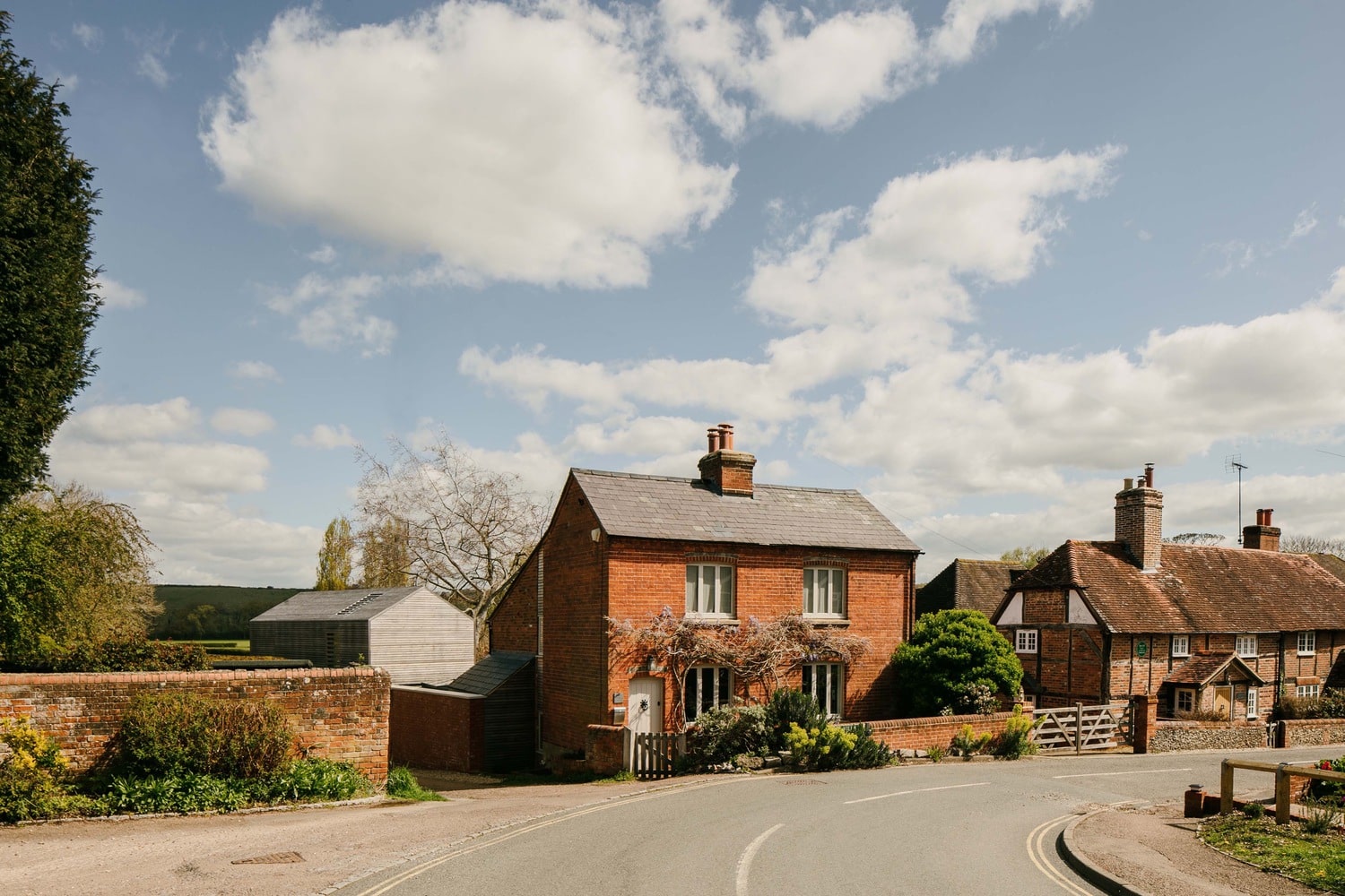 Although the existing red brick cottage sat close to expansive countryside, it lacked meaningful visual connection to the surrounding landscape. The architects were tasked with creating an addition that could frame distant views while addressing the sensitive conditions of a site bordering a public bridleway. This challenge was heightened by the personal nature of the commission: the clients had grown up in the village and wished to contribute a thoughtful yet distinct architectural gesture to the place they had returned to later in life.
