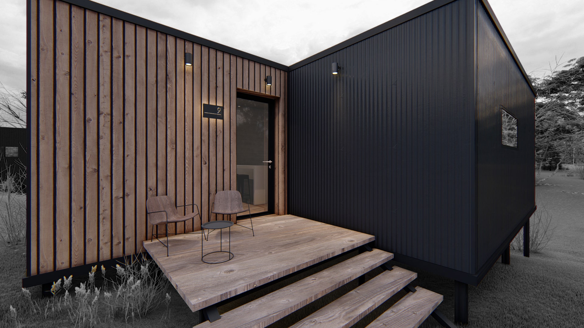The buildings were distributed on the principle of a chessboard. Natural barriers (trees, bushes etc.) were used to create individual spaces. The whole area and the cottages are adapted for people with disabilities. The zone is fenced with greenery, and the parking spots are equipped with security blocks.