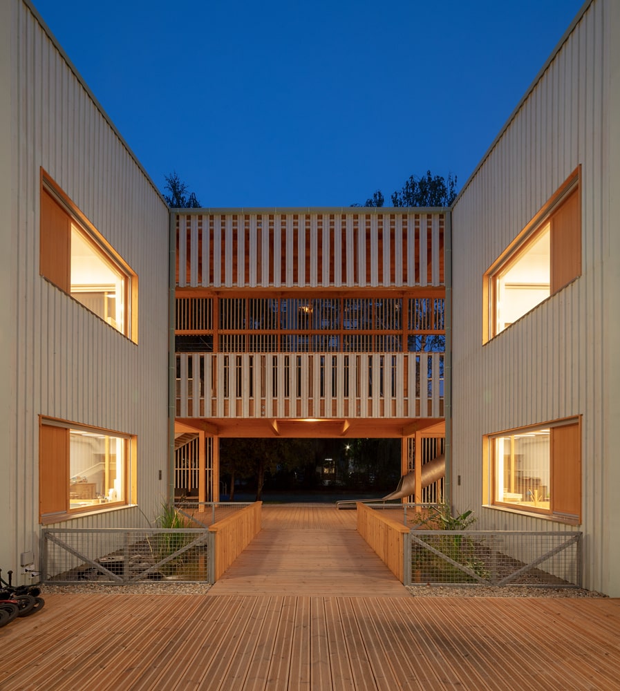 Natural light, ventilation, and visual connections to outdoor play areas encourage children to perceive the environment as an integral part of learning. The building itself becomes a teaching tool, demonstrating how architecture can respond responsibly to its natural and urban context.