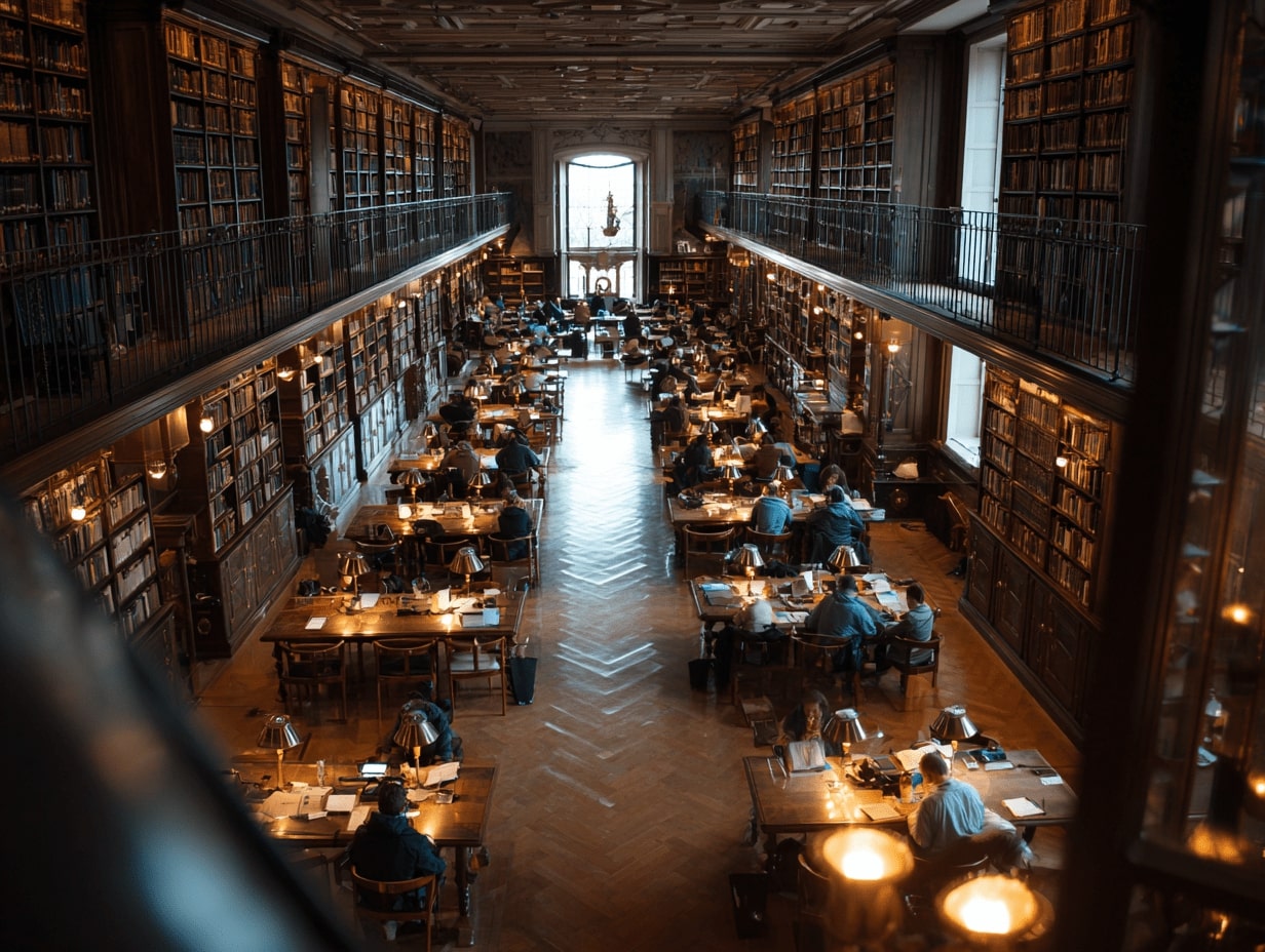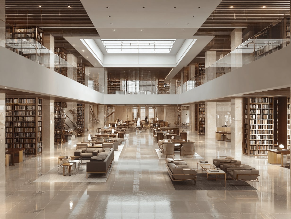 - Quiet: enclosed study rooms, carrels with task lighting, soft surfaces, and sightlines that reduce distraction.
