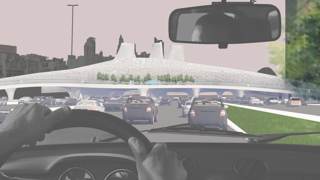 Invasion is a mixed used development above E11 highway that bridges the gap in the city that occurred due to the highway. Hence, the concept approach of the project is to enhance walkability in the neighborhood by following the Flow of pedestrians traveling between the different gathering points. However, the Flow is simulated using Swarm Technology, and the form of the project has followed its lines. Invasion aims to create an urban hub in the city with a dense program that attracts people with different interests.