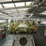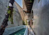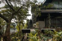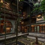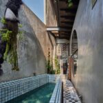 Architecturally, Kampoong Guha unfolds as a journey through a layered kampung. The design blends adaptive reuse of older structures with a mix of materials — wood, bamboo, light galvanized steel, recycled tiles — combined with industrial components such as concrete, glass, and gypsum. This produces what the architects call a “chameleon-like” architecture, capable of blending with multiple contexts while remaining distinct.