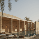 The architectural design seeks inspiration from the identity of the desert, honoring the community’s artisanal heritage, environmental stewardship, and the collective construction traditions of the region, such as the “aflaj” (al-Faz’ah: traditional irrigation canals for crop cultivation).