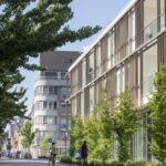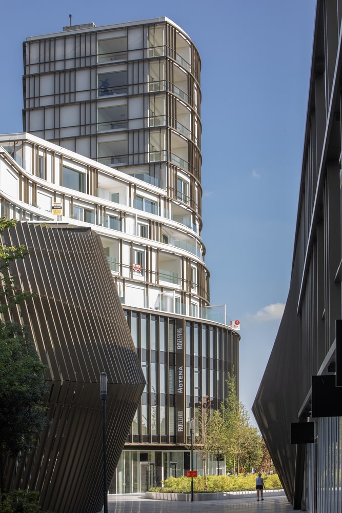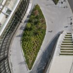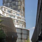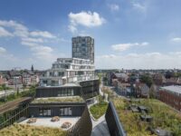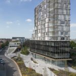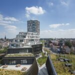 Green roofs and planted terraces—covering more than 2,100 square meters—shape the project’s stepped silhouette while contributing to urban biodiversity, stormwater management, and thermal comfort. The 46-meter tower has quickly become a recognizable landmark, signaling the district’s renewal while remaining grounded in its local context.