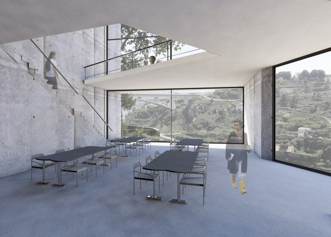 The idea was to be able to understand the importance of each volume already through the reading of the master plan. The interior spaces are intended to make feel a specific atmosphere that we find in the city of porto . Such the particular topography in the city, the users feel like to dominate the city because we can have a view everywhere from everywhere. That’s what we wanted to show through the spaces creates. In fact, the spaces we have created have been thought to that users can feel this sensation of domination. Users dominate the created space. Just like in the city where we can feel this feeling of domination thanks to this very particular topography.