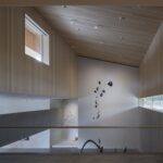 The main gallery level includes the daylit Open Plan Gallery beneath a central disc-shaped roof. Its orthogonal and curved geometries reflect the disc above, while large windows frame views to the Vestige Garden. An Apse Gallery, formed from offset curved walls, eliminates visible corners to focus attention entirely on the artwork. Together, these spaces accommodate Calder’s large and small works, offering varied spatial conditions and multiple viewing angles. The Curved Gallery provides a fully internalized, controlled-light environment for delicate works, including drawings and light-sensitive sculptures.