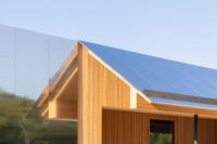 Calder Gardens presents itself primarily as a garden rather than a building. A tapered metal wall along the Parkway reduces highway noise and frames a meadow-like public garden, drawing visitors along pathways from the northeast and northwest corners. A folded metal canopy marks the entry, where a wood-lined lobby introduces the museum experience in a domestic scale, contrasting with the monumental entrances typical of most museums.