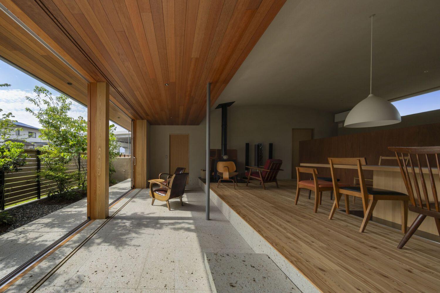 The office in question beautifully embodies this philosophy. Its design features walls and ceilings crafted from wood and plaster, creating a warm and inviting atmosphere. The space includes an area with an earthen floor made of Oya-stone, adding a unique, natural element to the environment. Additionally, the office is complemented by a garden where one can experience the changing seasons, offering a serene escape from the routine of work.