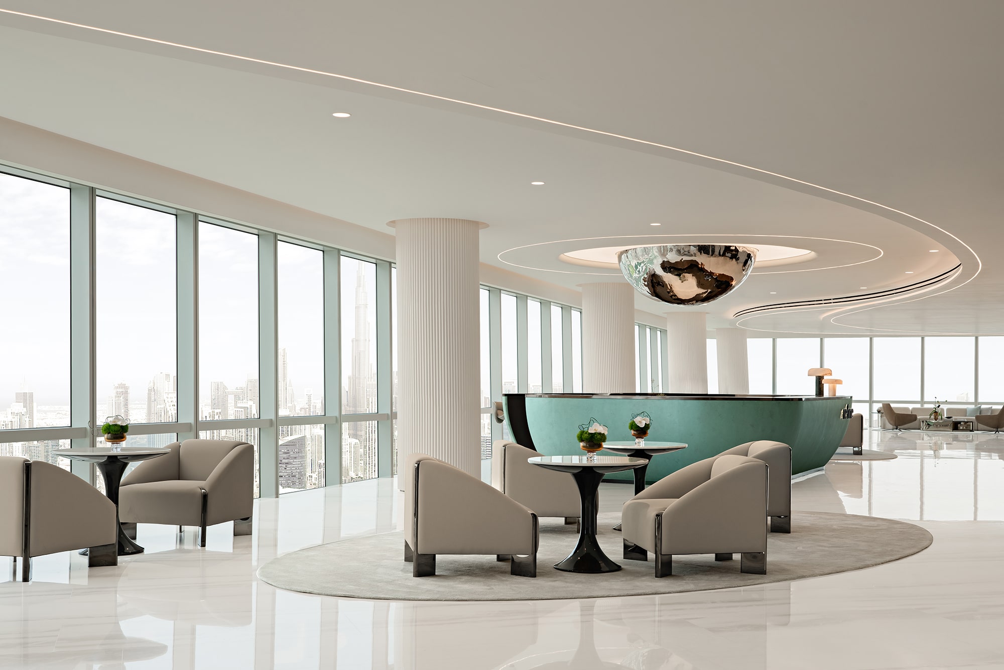 Sound becomes a part of the spatial narrative. The curated soundscape blends the sweeping, oceanic rhythm of Achille-Claude Debussy’s La Mer with the profound depth of György Ligeti’s Atmosphères, seemingly stretching time and stimulating thoughts to wander between reason and imagination. Against the backdrop of the distant coastline and the futuristic cityscape nearby, negotiation transcends mere business.