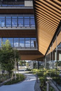 Beyond operational efficiency, the Juzen Chemical Head Office embodies a philosophy of holistic well-being and cultural integration. Its design fosters collaboration and creativity while maintaining spaces for individual focus, reflecting the company’s collaborative culture. The interaction of architecture, landscape, and history provides employees with a workplace that nurtures both productivity and personal comfort. The building also engages the surrounding community by integrating public-facing elements, such as the park connection and gallery, reinforcing Juzen Chemical’s role as a socially responsible organization.