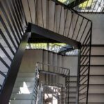 The program is distributed vertically across five levels. The ground floor functions as a piloti, welcoming visitors with reception, a gallery showcasing the company’s activities, and a breezeway allowing vehicular access. Second-floor offices accommodate major departments, supplemented by a work lounge that encourages informal exchange. The third floor hosts a cafeteria shared by office and factory staff, while fourth-floor executive offices are complemented by a library, lounge, and rooftop terrace. Finally, the fifth floor contains conference rooms offering panoramic views of the surrounding landscape. Vertical circulation is concentrated at the fulcrum of the L-shaped plan, ensuring operational efficiency and intuitive movement.