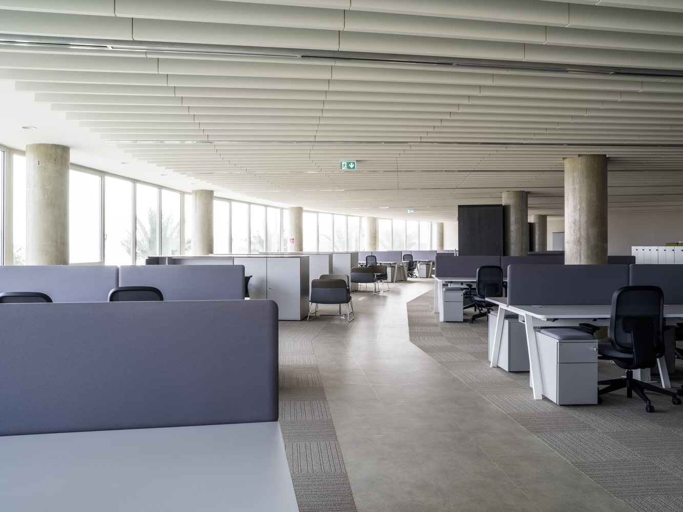 From the fourth level upward, each floor integrates outdoor terraces that offer employees the opportunity to work, meet, or relax in open air. These elevated spaces frame expansive views of the lagoon and surrounding greenery, reinforcing a strong connection to the natural environment even within a dense corporate setting.