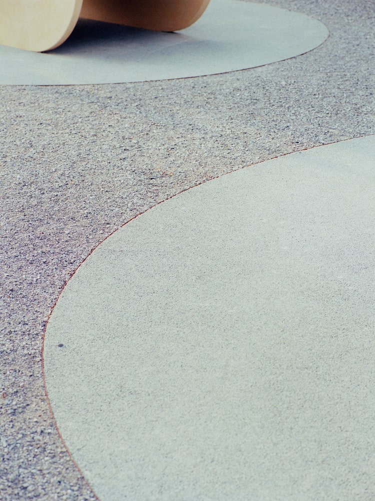 The paths are deliberately curvilinear, winding in loops and rings that create a series of specialized circular surfaces across the park. These surfaces become defined areas for distinct activities, ranging from outdoor play and physical exercise to quiet contemplation and social interaction. This design strategy encourages movement that is exploratory rather than linear, fostering spontaneity and engagement with the landscape.