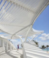 The park forms part of Fort Lauderdale’s ongoing investment in resilient shoreline development, aiming to strengthen both the natural and urban fabric of this vulnerable region. Its transformation demonstrates how cities can shift away from impermeable, heat-generating surfaces and instead embrace green spaces that promote biodiversity, mitigate climate stressors, and enhance community well-being. By “botanizing” the former parking lot, the architects resurrect coastal dune systems and tropical maritime hardwood hammocks—ecosystems once dominant in South Florida’s landscape but now greatly diminished.