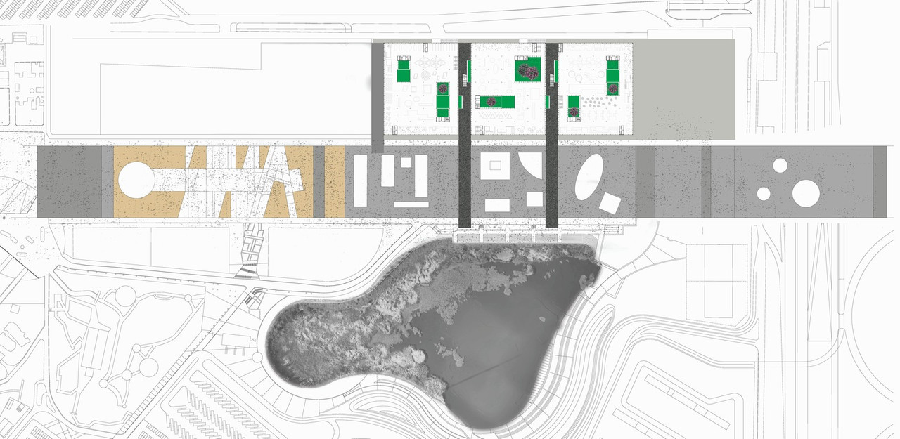 Perhaps, by generating this type of foundation, our greatest challenge lies in the need to develop infrastructure that will last over time. Although they seem monotonous and rigid, they can be changeable and flexible. These self-imposed conditions allowed us to organice our proposal for the International Pavilions, based on the following guidelines: