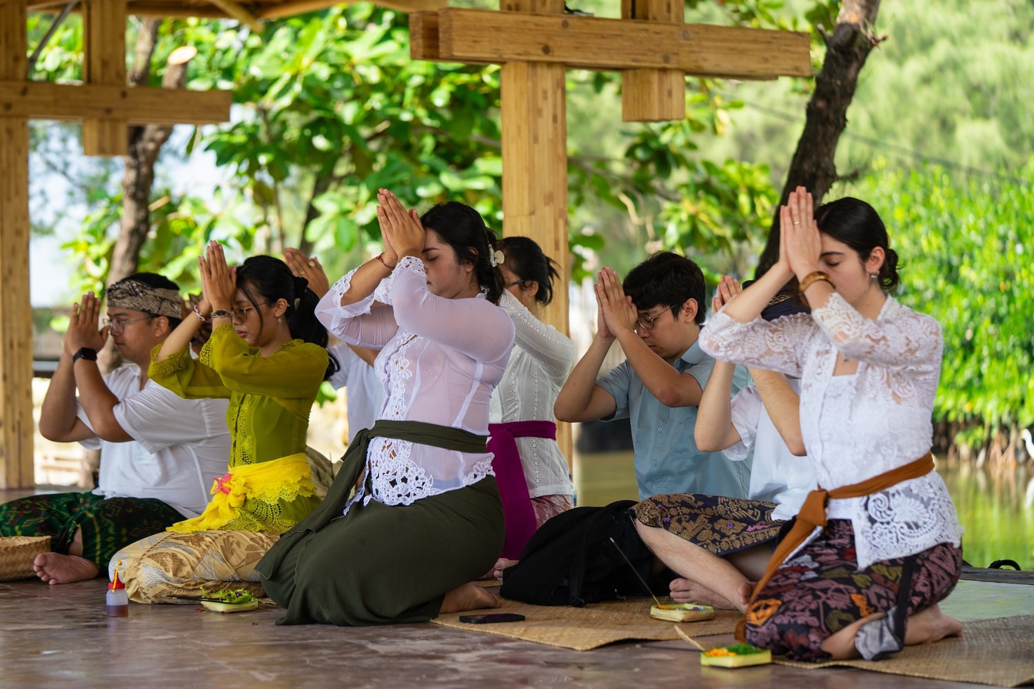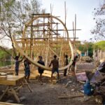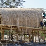 The BaleBio Pavilion was realized through collaboration among Cave Urban, Bauhaus Earth, Bamboo Village Trust, Atelier One, Eco Mantra, Kota Kita, Indobamboo, University of Warmadewa students, and local craftspeople. Prefabricated components were delivered and assembled on site, demonstrating rapid, low-impact construction methods reminiscent of mass timber systems. Prior to construction, local architects were consulted to ensure alignment with three guiding principles: use natural materials, minimize environmental impact, and serve the community. The site was consecrated through Meruak rituals at both ground-breaking and completion, highlighting the pavilion’s cultural significance.