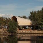 The pavilion’s material palette is entirely sourced and remade within Indonesia, forming a circular, regenerative system: