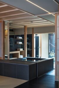 STUDIO ALUC approached the project with a profound respect for Kyoto’s architectural heritage. Rather than attempting to recreate a static historical setting, the architects have designed a space that extends the life of the machiya by adapting it to modern modes of inhabitation. The result is neither purely traditional nor starkly modern—it is an intermediate space that bridges past and present.