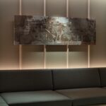 Subtle, seamless LED lighting begins at the entry and leads the visitor toward the heart of the home. This carefully controlled illumination enhances the spatial journey, functioning both as a wayfinding tool and as an atmospheric element. The transition culminates in the living room, where the ceiling height and openness expand suddenly, creating a moment of release after the compressed entry sequence.