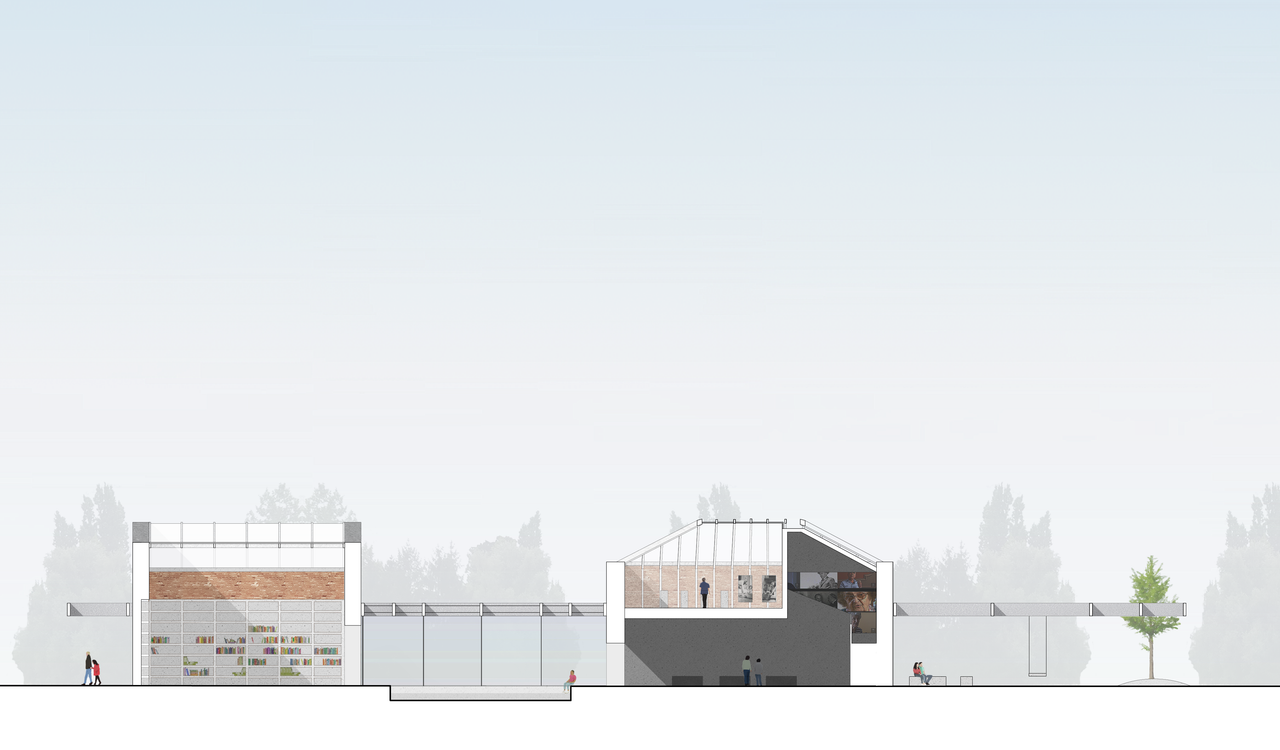 The two existing rural buildings which were planned to be demolished by the municipality and the competition brief, framed by a suspended metal roof, became the main building of the memorial. They were originally part of the space in which the children of Nonantola lived and played at the time of the events. The structure host a space for public discussions and performances that is open to everybody. The two ruins contain the documentation centre and the museum part which tell the story of the children of Nonantola