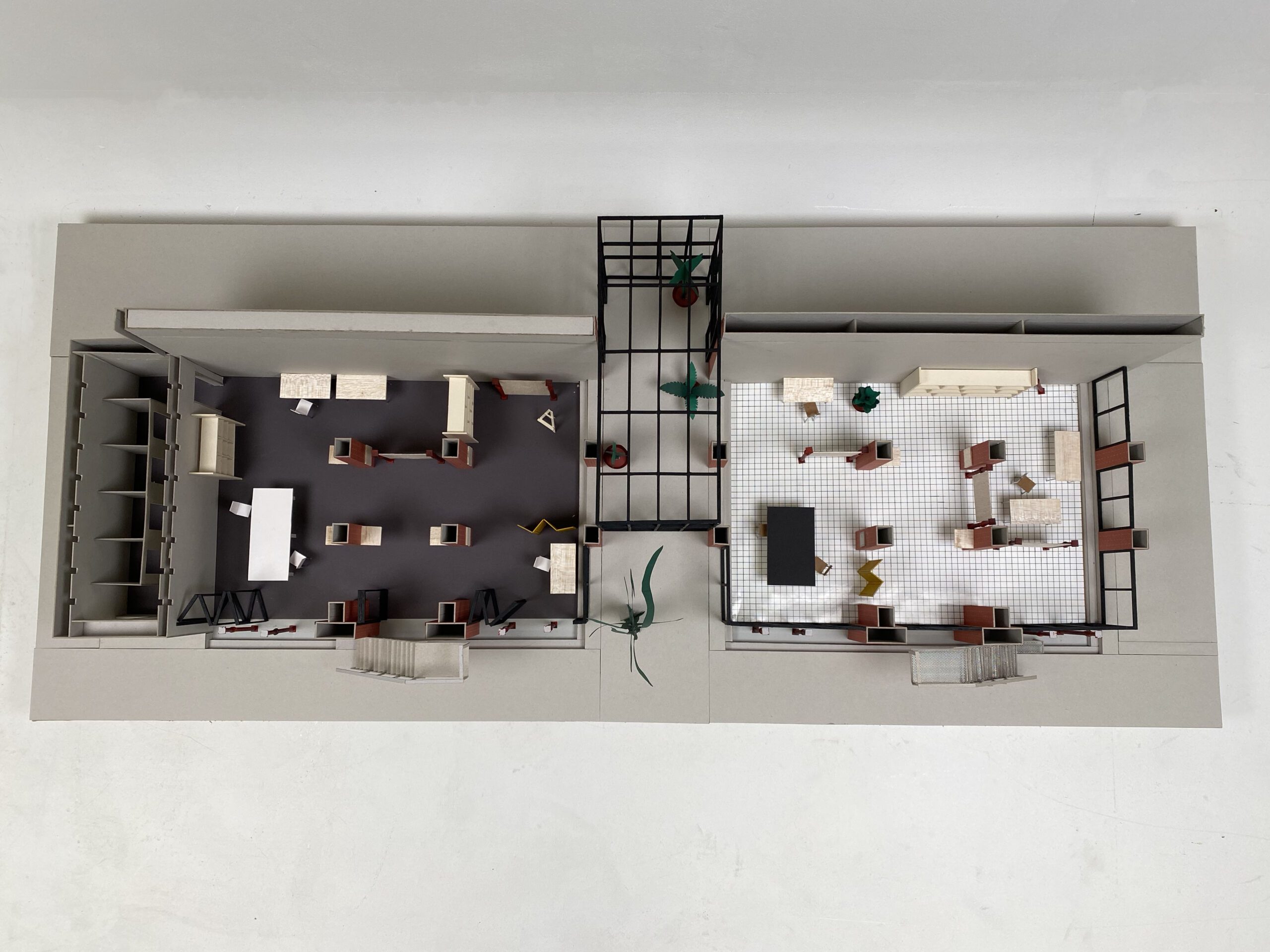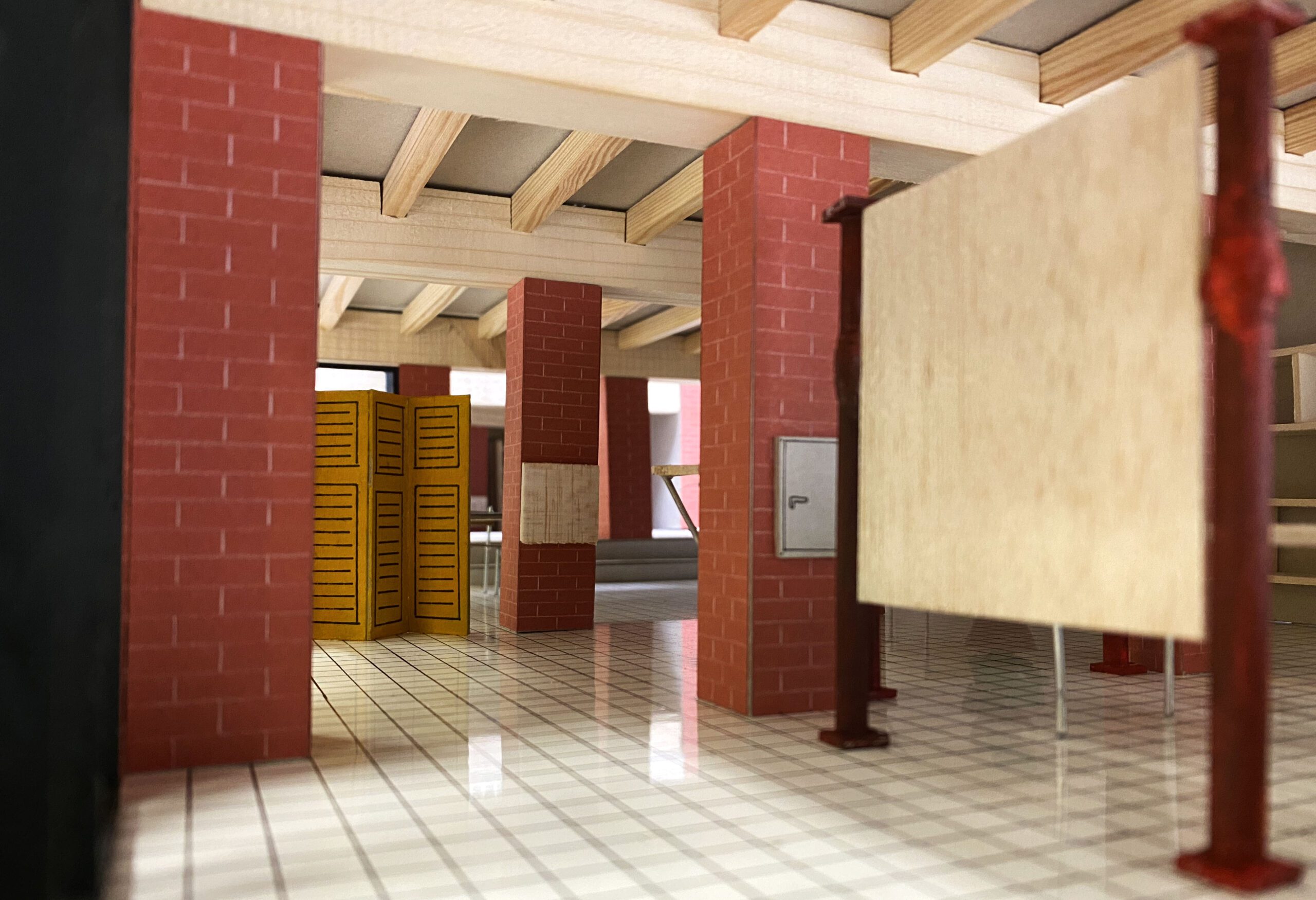 Starting with yoga in the morning, having working tables for unrestricted use available, maybe a pottery class in the afternoon, ending with a small concert in the evening and a flea market in the weekends, the space can be used simultaneously by different groups. The columns in the room and the wooden partition walls make a subdivision of the room possible. By the partition walls not being permanently attached to the ground, they can be moved around, allowing different variations in room size. With proposals for furniture design made out of cheap materials already available and articles from hardware store, we want to motivate people to adapt their environment according to their needs and re-use items.