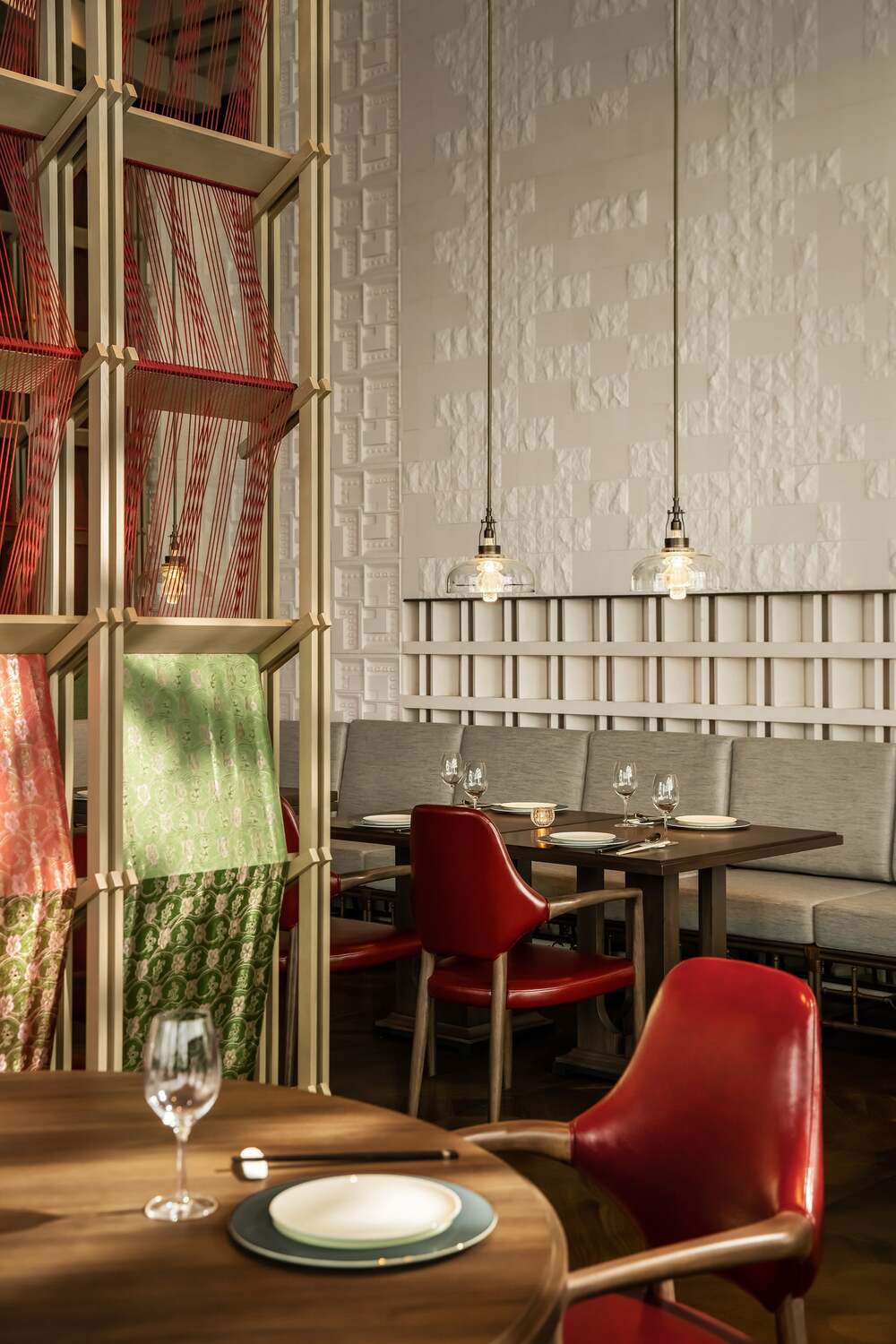 By incorporating Sichuan figured satin, the designers skillfully interwove time into the space, curating an enchanting feast of the traditional craft.