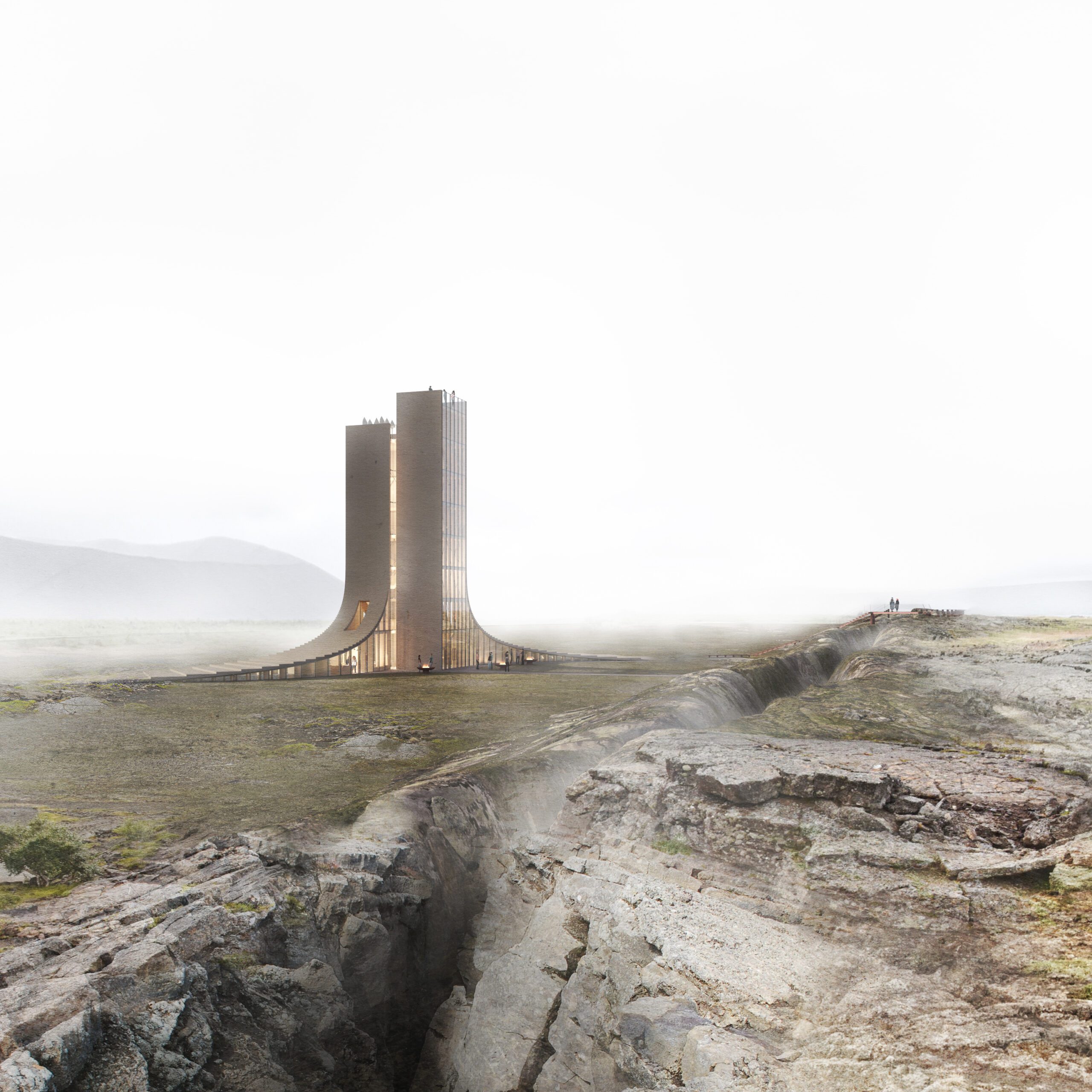 Participants were tasked with submitting proposals for an observation point accommodating a small visitor center next to Grjotagja in Iceland, a unique site defined by a several meters wide fissure which expresses the diverging plate boundary between North America and Eurasia.